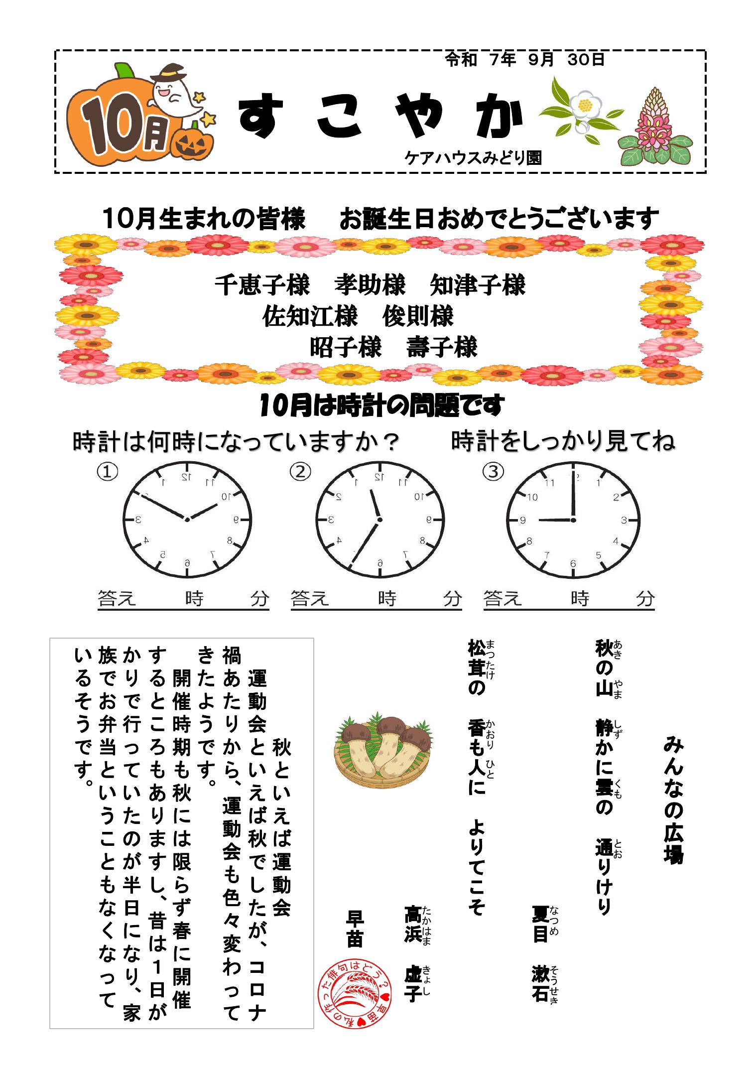 ◎ブログ ケアハウス・第2ケアハウスみどり園心身ともに健康で明るく、不安のない毎日が送れるように季節感あふれる食事の提供をはじめ、定期検診実施などの健康管理、各種趣味・クラブ活動等、いきいき生活の応援をさせていただきます。 |