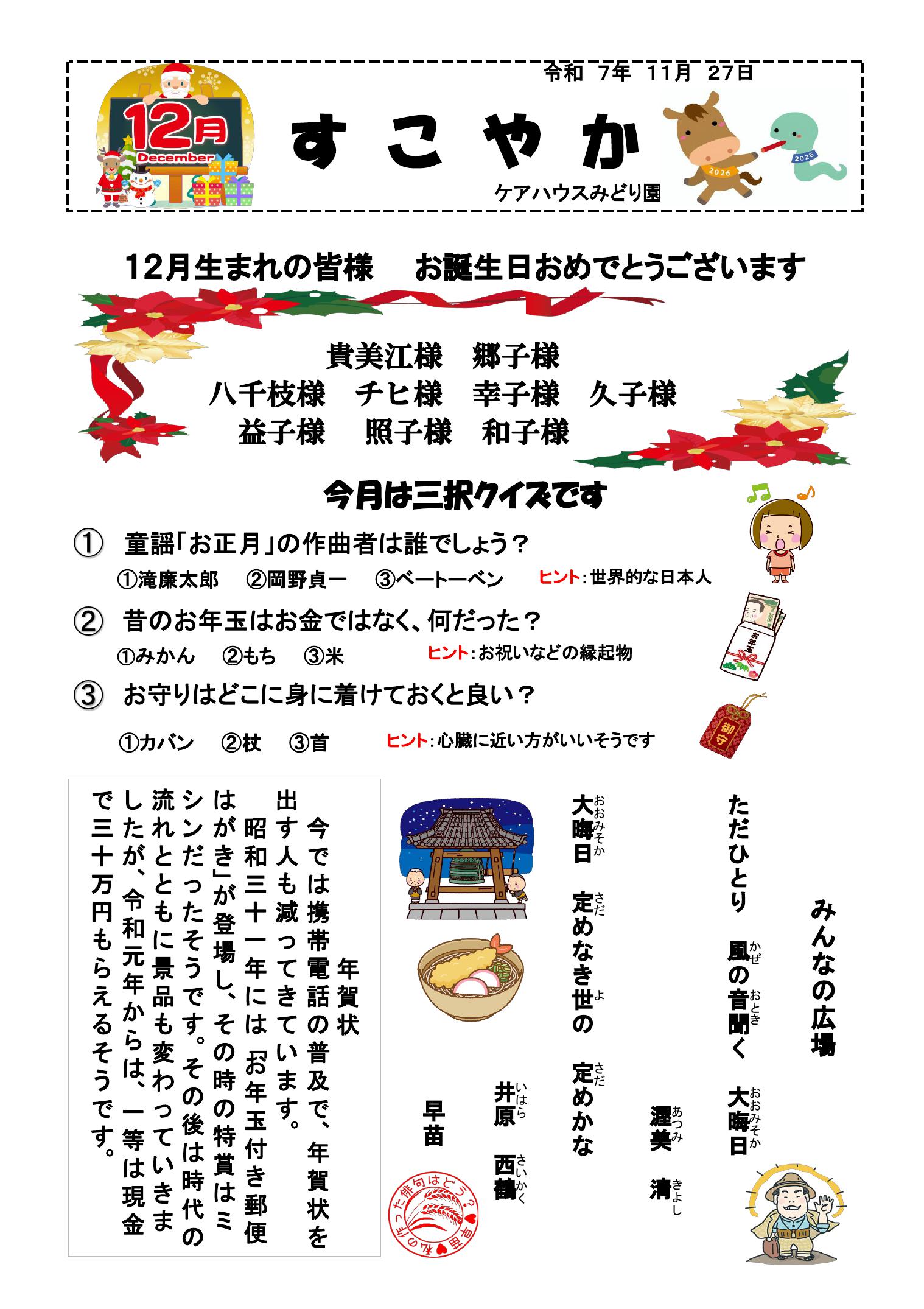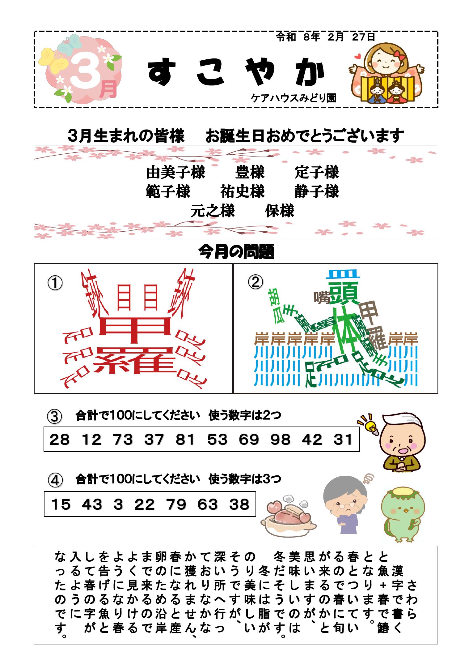 ◎ブログ ケアハウス・第2ケアハウスみどり園心身ともに健康で明るく、不安のない毎日が送れるように季節感あふれる食事の提供をはじめ、定期検診実施などの健康管理、各種趣味・クラブ活動等、いきいき生活の応援をさせていただきます。